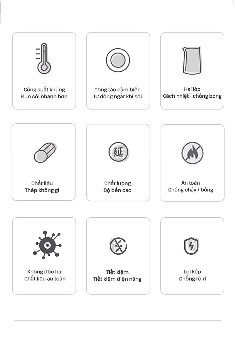 Chế độ tự động tắt khi nước sôi, cạn nước hoặc quá nhiệt