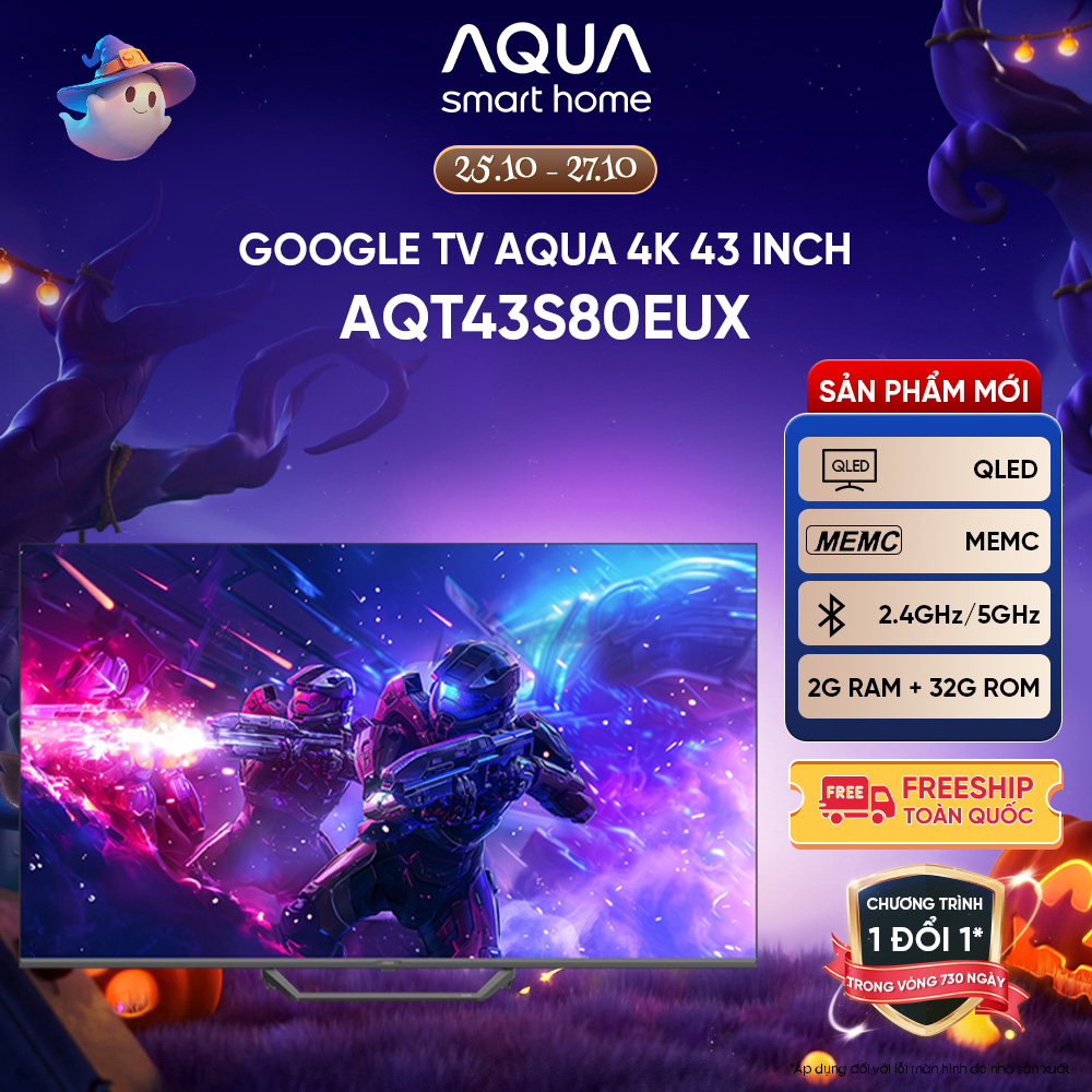 Giới thiệu Google Tivi Aqua QLED 4K 50 inch AQT50S80EUX - Freeship toàn quốc - Bảo hành 1 đổi 1 trong 730 ngày đối với lỗi màn hình - Hàng chính hãng