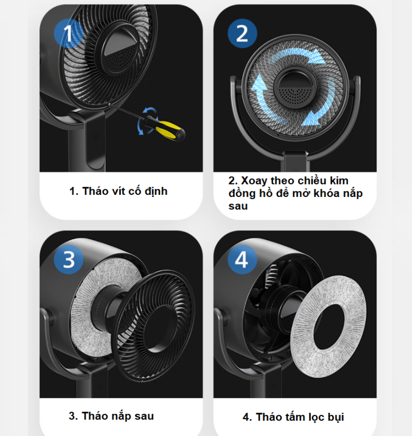 - Kết hợp lưới lọc phía sau giúp lọc bụi và lông tơ