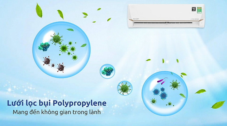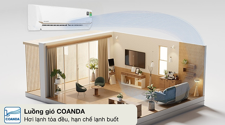 - Máy lạnh Sharp được trang bị luồng gió thoải mái Coanda – phân phối gió nhẹ nhàng, không thổi trực tiếp vào người dùng.