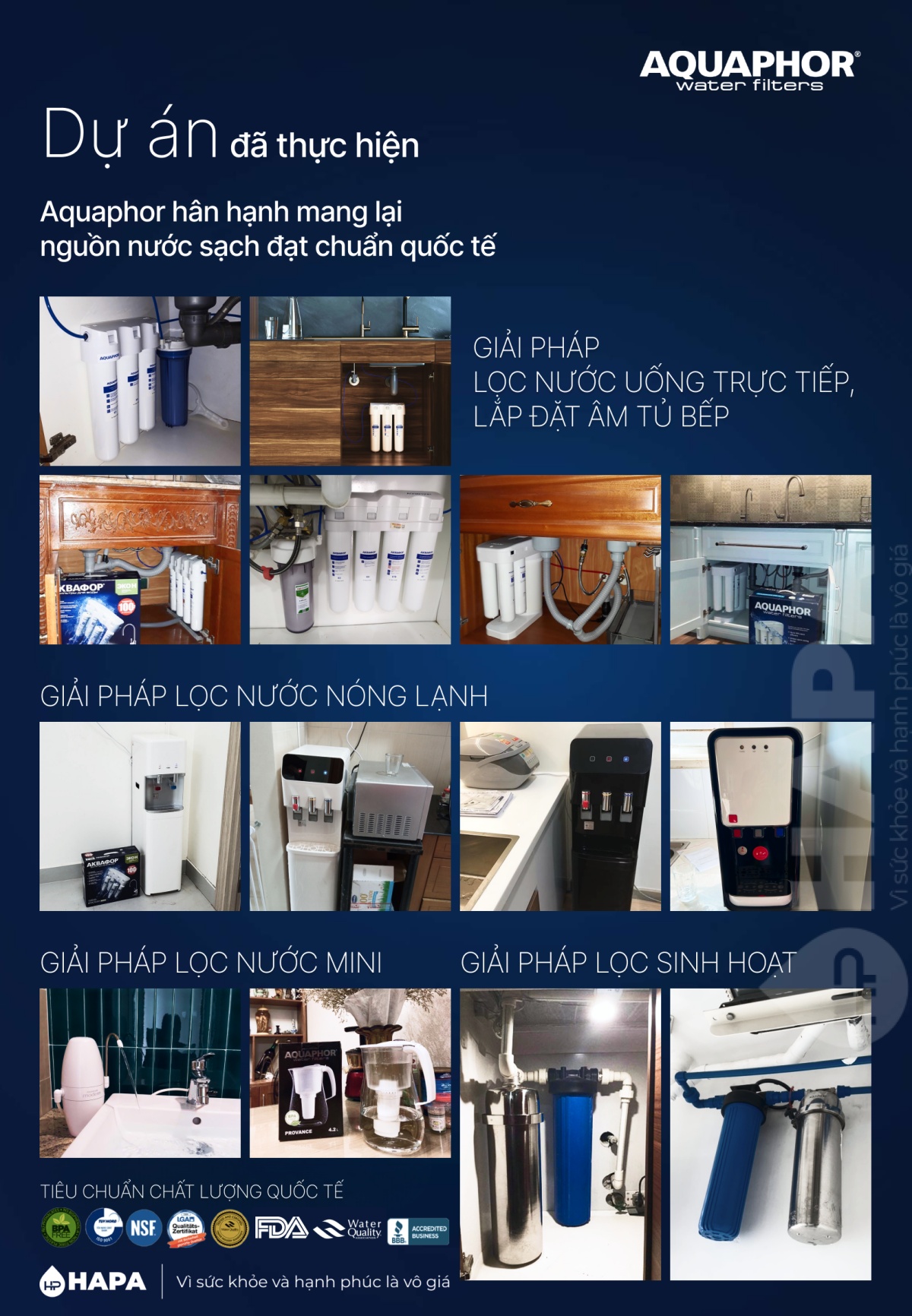 - Máy Lọc Nước AQUAPHOR đạt các tiêu chuẩn chứng nhận quốc tế NSF, WQA, FDA, BPA Free, TUV, LGA, ISO, Viện Pasteur và Chuẩn nước uống đóng chai của Bộ Y Tế.
