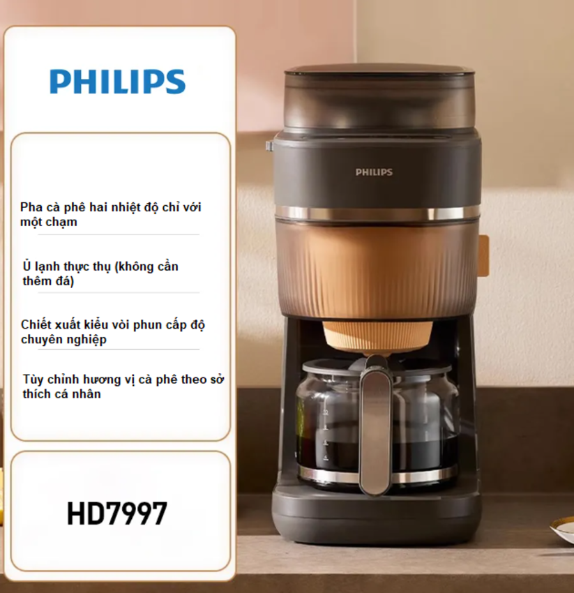 - Là một tín đồ cà phê, bạn sẽ yêu thích sự tươi ngon của hạt cà phê trong mỗi tách. Philips HD7997 cho phép bạn thư giãn khi pha, thưởng thức một cách ngon miệng khi nhâm nhi tách cà phê yêu thích.