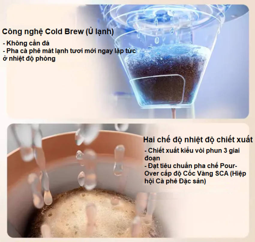 - Hai chế độ chiết xuất: Chiết xuất kiểu vòi phun 3 giai đoạn