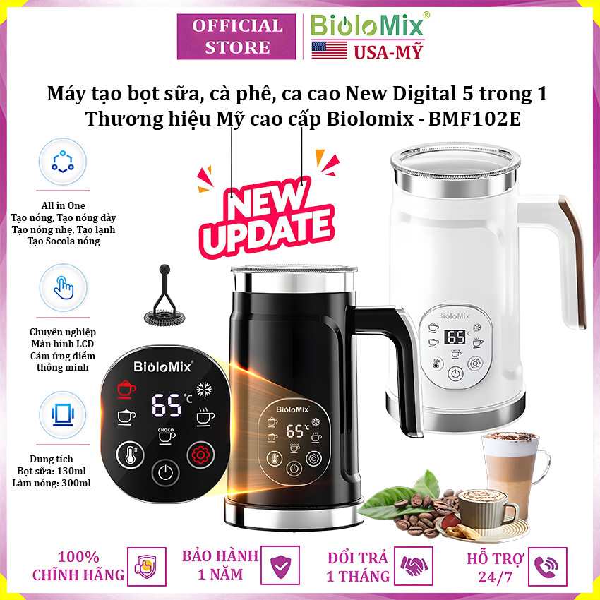 - Máy tạo bọt sữa Biolomix BMF102E New Digital được thiết kế với kiểu dáng sang trọng, độc đáo và cao cấp. Máy có thể tạo bọt sữa nóng, lạnh cho cappuccino, đồng thời làm nóng sữa để pha latte...
