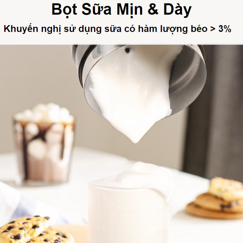 - Máy có thể tạo bọt sữa đặc nóng, bọt sữa nhẹ nóng, bọt sữa lạnh, hâm nóng sữa và pha sô-cô-la nóng. Bạn có thể thưởng thức những ly cà phê chuẩn vị ngay tại nhà chỉ trong vài phút.
