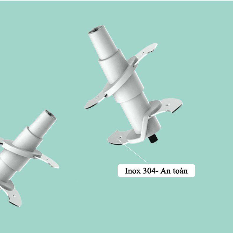 - Các chi tiết còn lại làm hoàn toàn bằng inox 304 vô cùng an toàn với sức khỏe, độ bền cao. - 2 lưỡi dao xay bằng thép siêu bén, cối xay bằng chất liệu rất an toàn cho người dùng và chống va đập tốt