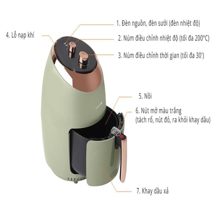 Nhưng so với ga thì nồi chiên vẫn kinh tế hơn, mà đám bảo an toàn. 4. Chức năng: mấy chức năng như là hẹn giờ, cảm ứng điện tử, điều chỉnh nhiệt độ..... Nồi chiên không dầu CASAMOM, một chiếc nồi ưu Việt giải quyết được các tiêu trí trên Nồi chiên Casamom với thông số kỹ thuật như sau: