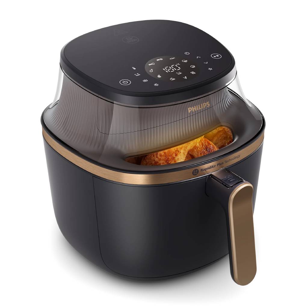 Công nghệ RapidAir Plus được cấp bằng sáng chế với thiết kế hình sao độc đáo luân chuyển luồng khí nóng xung quanh và xuyên qua thực phẩm với luồng khí nhanh hơn, đảm bảo nấu chín đều cả bên trong và bên ngoài để có những bữa ăn ngon tại nhà trong thời gian ngắn hơn 30%