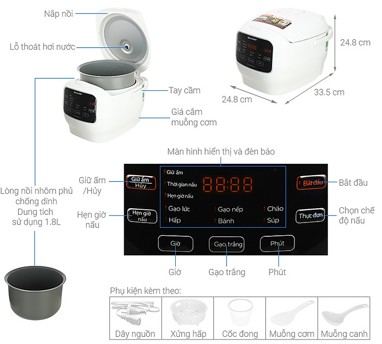 * Hẹn giờ đến 24 giờ và giữ ấm đến 12 giờ.