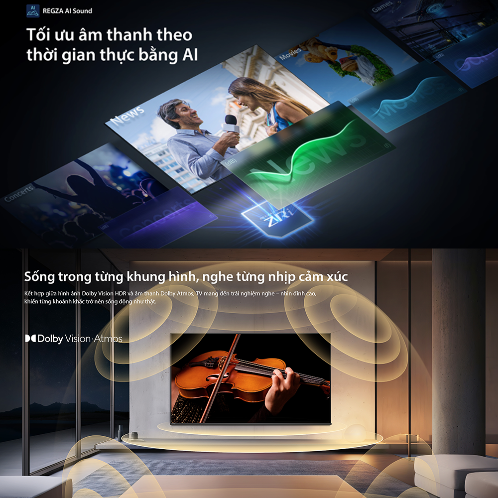 | Công nghệ âm thanh | Dolby Atmos, Regza Power Audio, DTS X |